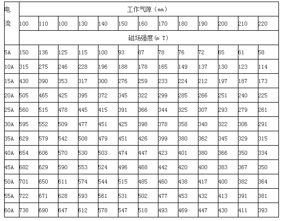 2.4、最大磁場(chǎng):工作氣隙100mm時(shí),H≥0.7T