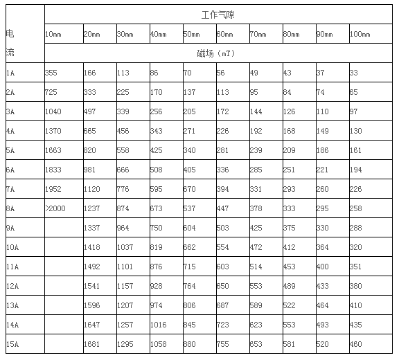 2.4、最大磁場(chǎng) :H>2T, 工作氣隙10mm時(shí)