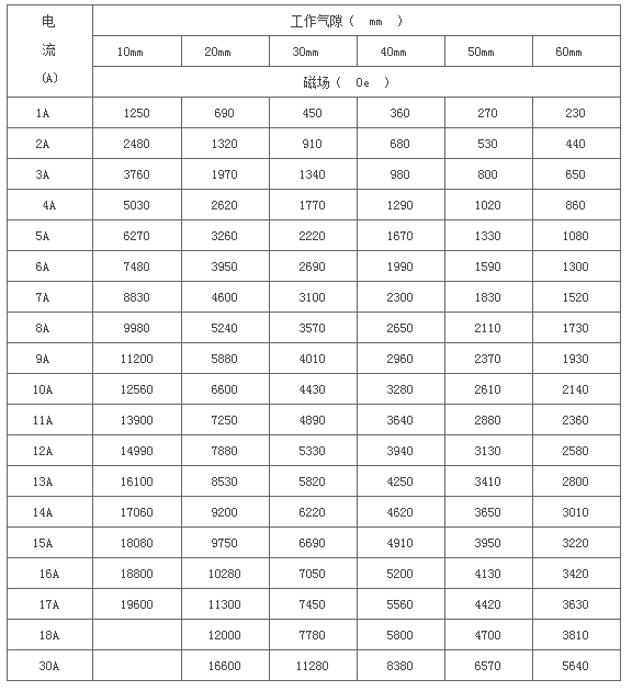 * 剩 磁:≤10mT, 工作氣隙10mm時(shí)